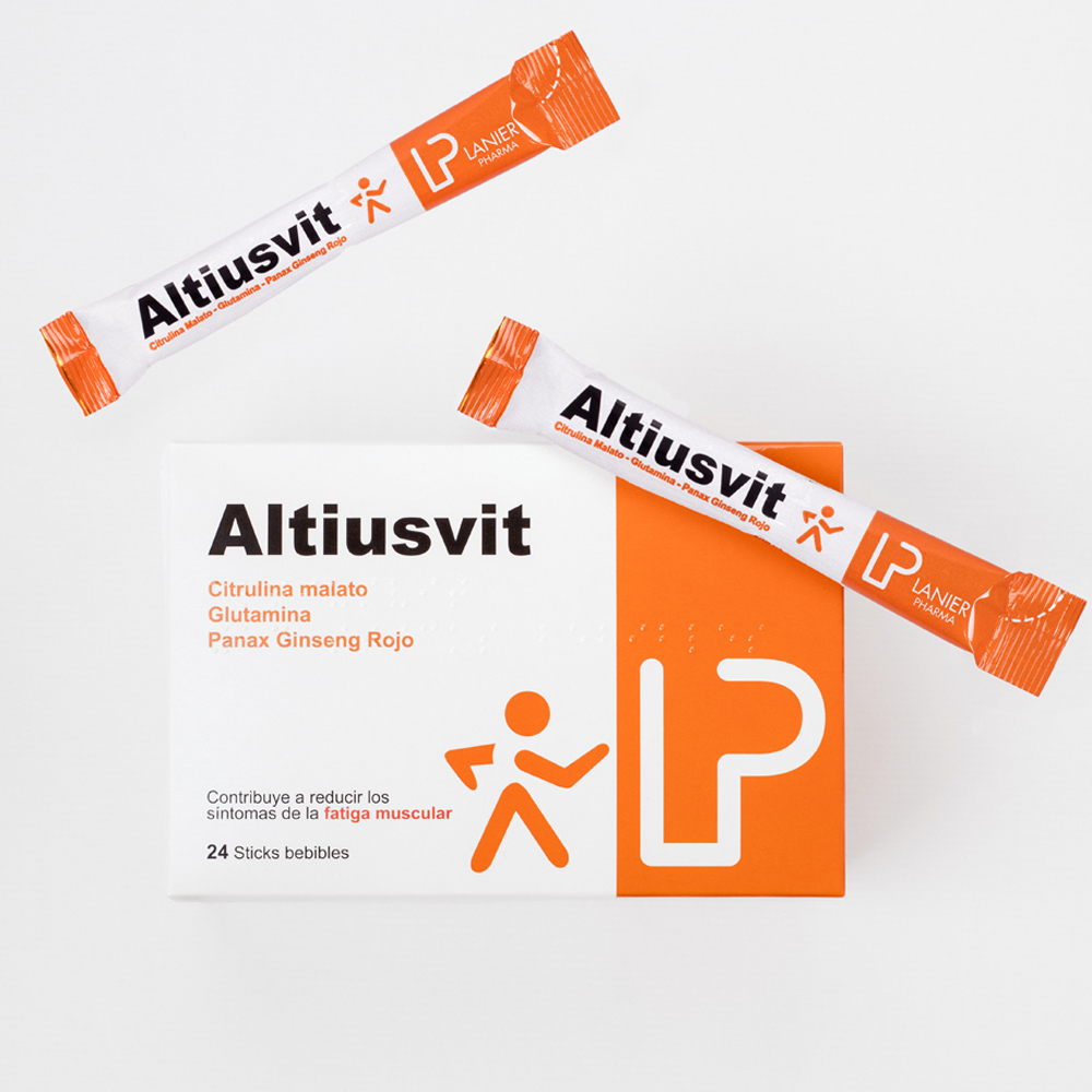 ALTIUSVIT es un complemento alimenticio con Citrulina malato, Glutamina y Pannax ginseng rojo que contribuye a reducir la fatiga y a recuperar la función muscular.